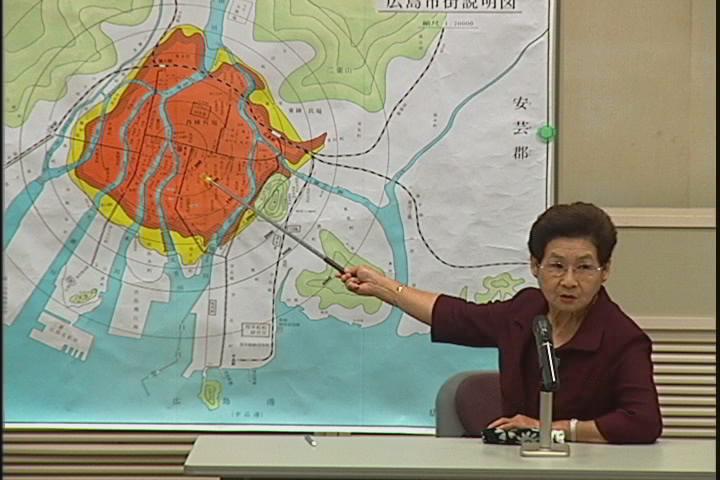 中島さんは、11歳のときに広島市内の爆心地から500mの所に住んでいましたが、たまたま原爆投下の数日前に約3Kmはなれた家にいたため、大事には至りませんでしたが、そのために多くの親戚を亡くしました。