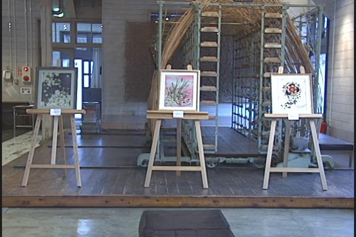 会場にはぼたんを使った作品があって、「ぼたんの花は厚みがありますがどうやって押すんですか?」と聞いたら「一枚一枚花びらをばらして押して、また一つの花のように重ね合わせるんです」と。
