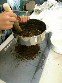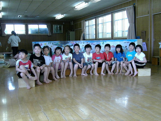 撮影は、2歳児のクラスを皮切りに給食の風景を撮影して行きました。みんなとてもおいしそうにモリモリ食べているのが、とても印象的でした。中には、大人も満足しそうな量の給食をペロリとたいらげて、お代わりをする子も、ちらほらと見受けられました。(育ち盛りは食べ盛り!どんどん食べて大きくなりましょう!) 最後に訪れたのは、5歳児のうちゅう組さんのクラス。 さすがに年長さんともあって、他のクラスの子供達に輪を掛けて元気いっぱいでした。 撮影の合間には、男の子を中心に得意のコマ回しを披露してくれました。私も早速、挑戦してみたのですが・・・む、難しすぎるっ!上手く回すことが出来ませんでした。(歳のせいかな・・・) そんな元気いっぱいの子供たちも、いざ撮影が始ればちゃんとイスに座って、私達の質問に応えてくれました。(えらい!)