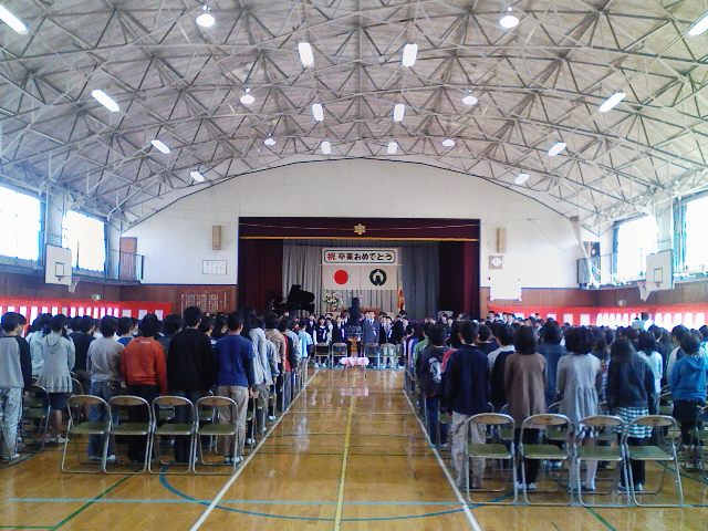 今年は3クラスで84人が巣立っていきました。 私の小学校時代は5クラスでした。しかも1クラス40人以上いたかな。もう遠い過去の話ですね。少子化を実感しました。