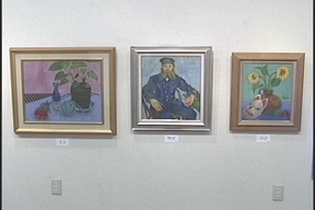 今日ご紹介するのは「学生4人展」! ここには、新久にある『チャボ絵画教室』の生徒の皆さんの 作品が並んでいます。