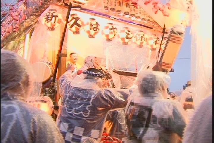 ひどい雨のせいで1日目は山車もほとんど出ていなかったのですが、それでも少しは演奏したいと自然に集まって囃子の演奏をしていました。