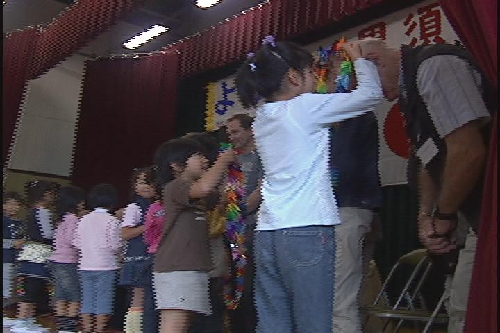 手作りのミニ国旗に鶴の首飾り、合奏にソーランに合唱と本当にたくさんの出し物で、ヴォ市の方々は大喜び!