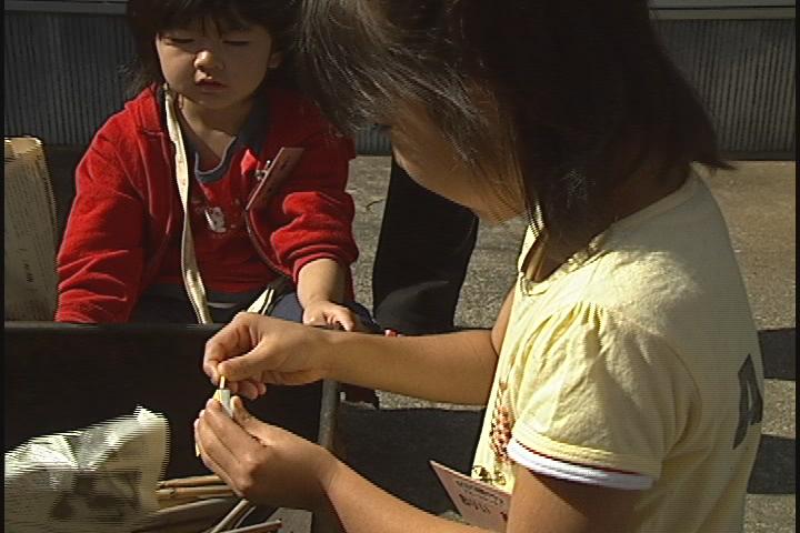 無事、食材を手に入れたら(食材を守ったら)それを切ったり洗ったりして、火をつけ、鉄板を準備します。 火をつけるといっても、マッチは各班2本ずつしかゲットできませんでした。 両班ともに1本目は失敗しましたが、片方の班は2本目で無事火をつけることが出来ました。 しかしもう一斑は、最後の1本を誰がつけるかやはり、押し付け合いです。 女の子が勇気を持ってやるにもなかなかつきません。 そこで男の子が、「代わるよ」と交代してチャレンジ!と思ったら失敗してしまいました。 大ピンチ!!と思い、「SOSカード」を提示しようとした瞬間!! 火が付いているほうの班の子が「こっちの火を新聞紙につけて持っていっていいよ」との優しい声が!! なかなか火がつかなかった女の子は泣きじゃくっていましたが、それを聞いて笑顔に! とっても友情が芽生えたいいバーベキュー体験でした。