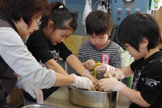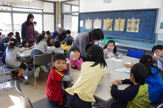 先日ここで、藤沢北小学校の1年生が染色体験をしてハンカチを作りました♪