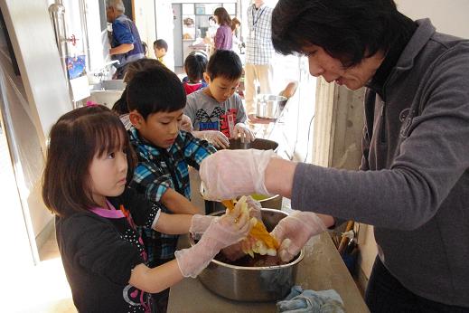 アミーゴの染色工房では、狭山茶やコチニール、桜、藍染などをすることができるのだそうですが、この日みんなが色をつけたのは、マリーゴールド!