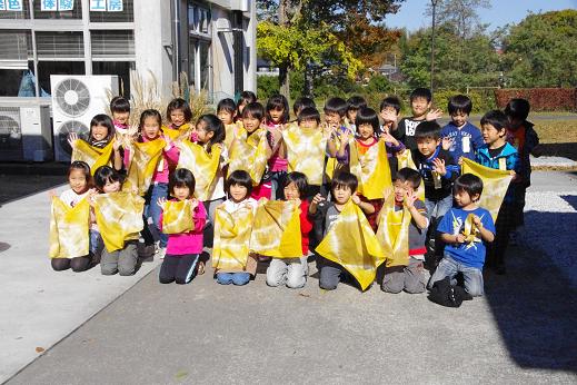 1学期に学校で育てたマリーゴールドとアミーゴで育てていたお花を合わせて黄色いきれいなハンカチができあがりました。