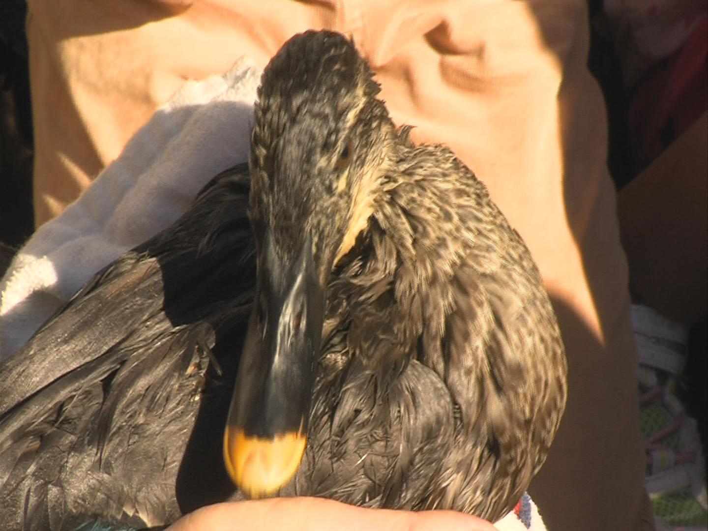 水から離れていた期間があったため、羽根が乾いてしまい、上手く浮くことができず、なんと、溺れそうになってしまいました。