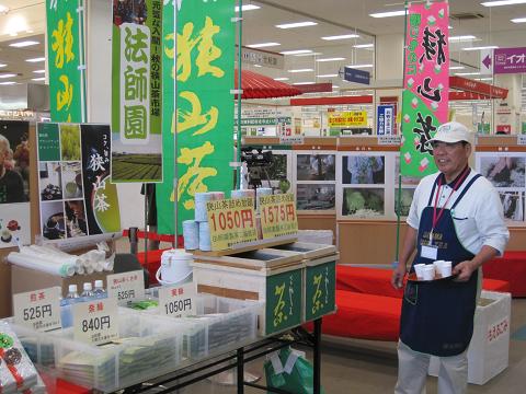 今回出店したのは、まず新久の丸山園。 お茶の葉を十分に蒸しますが、強く香りが残るように工夫している狭山茶を販売しています。 おススメは1000円の狭山茶ですが、イオンでは800円!