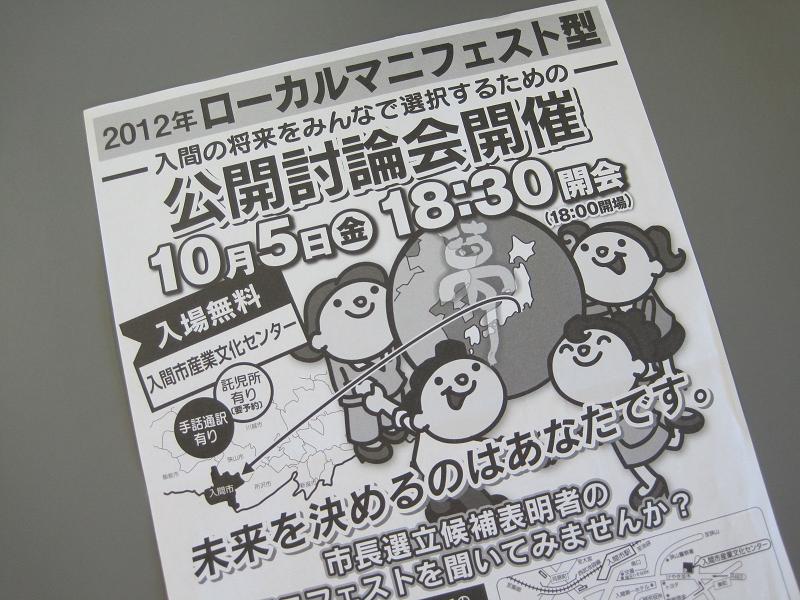 その選挙を前に、本日10月5日(金)午後6時30分から入間青年会議所主催の「公開討論会」が行われます。