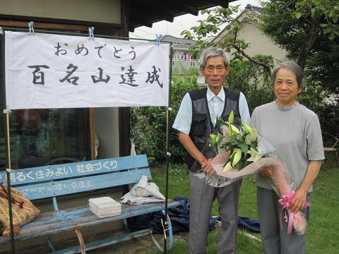 旦那さんの勝也さんも協力して現在82。 奥様の秀子さんが一足先に百名山登頂を成功しました。