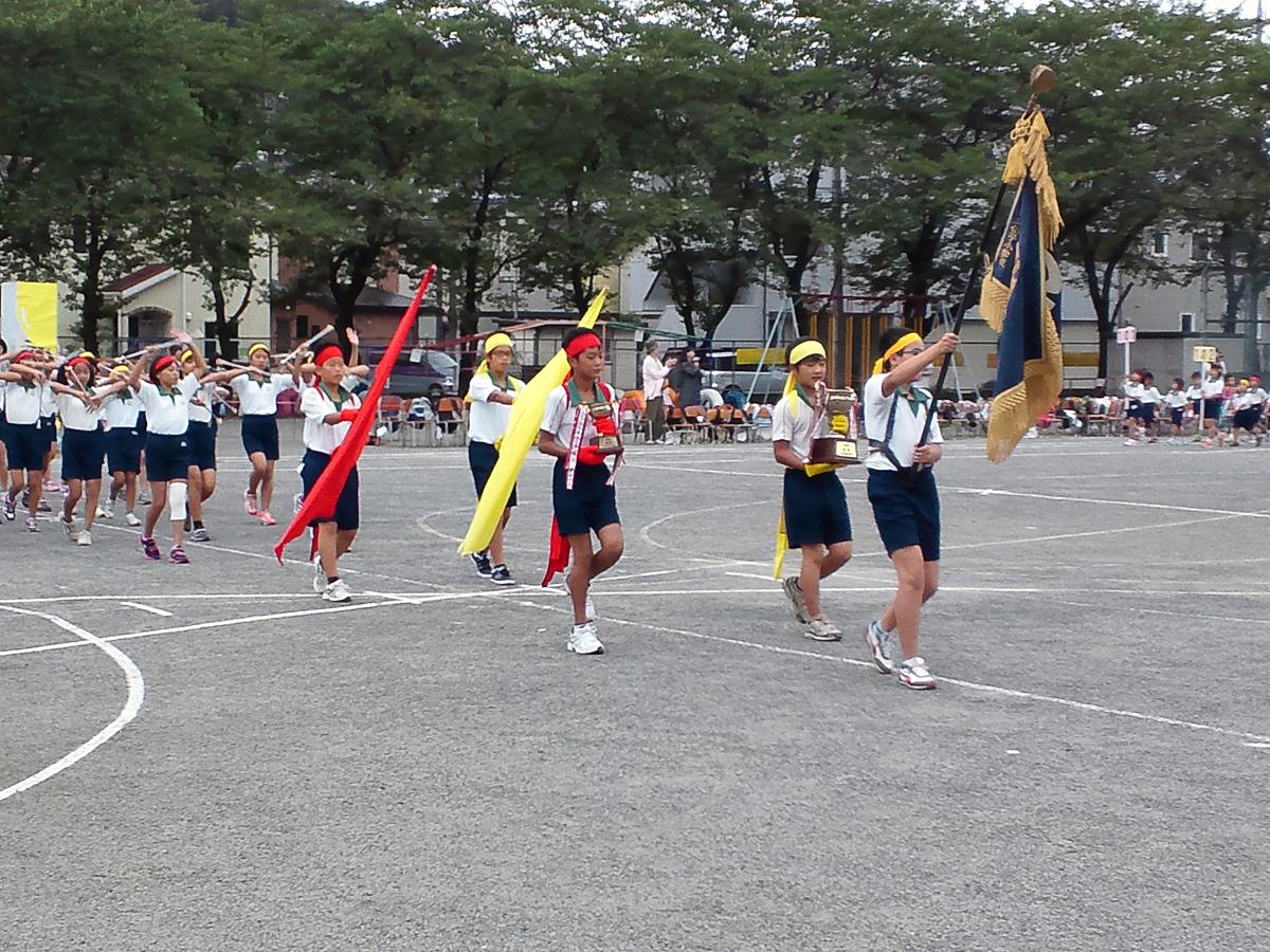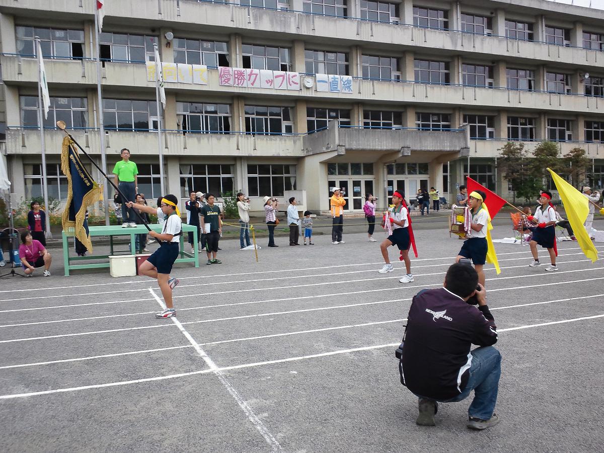 普段から地域の方がグラウンドゴルフを楽しんでいる平仙グラウンドに机とイスを並べて、みなさんが持ち寄れる物を持ち寄って本当にあたたかいお祝いの会。