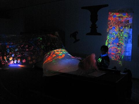 ブラックライトを使った演出や、音響にもこだわって手づくりで作り上げたものです。