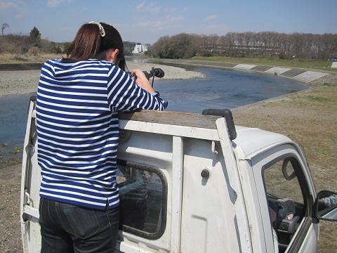 今回は新井さんの軽トラックの荷台に乗せていただいて、入間川沿いを撮影しました。