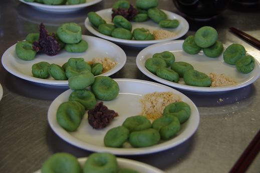 扇町屋・豊岡地区では、おとうろうまつりの前に草だんごを作る風習があるんですって。