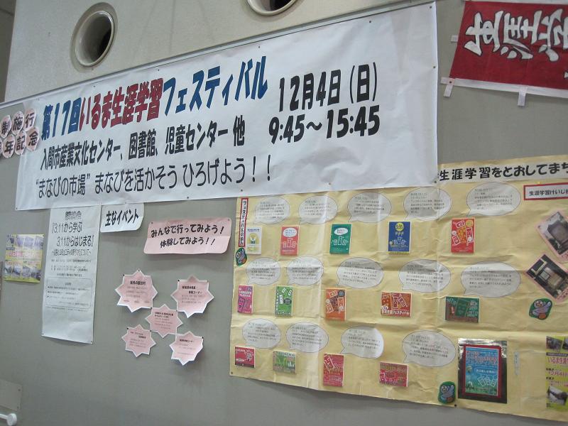 12月4日(日)産業文化センター・図書館・児童センター周辺を会場に「いるま生涯学習フェスティバル」が開催されます。
