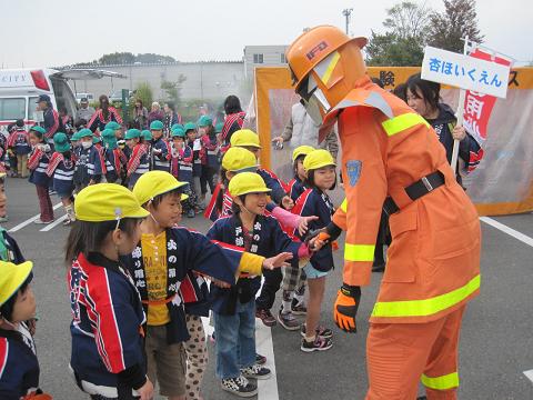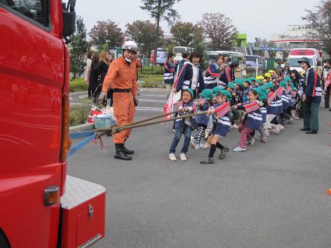 市内の保育所など20ヶ所から500人を超える年長さんが集まり、地震や煙体験、消防車と綱引きなど、楽しみながら火の怖さを勉強しました。