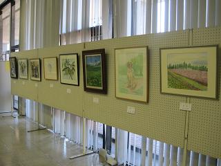 市民ギャラリーで初めての作品展、油彩画・水彩画・パステル画あわせて28点が展示されています。