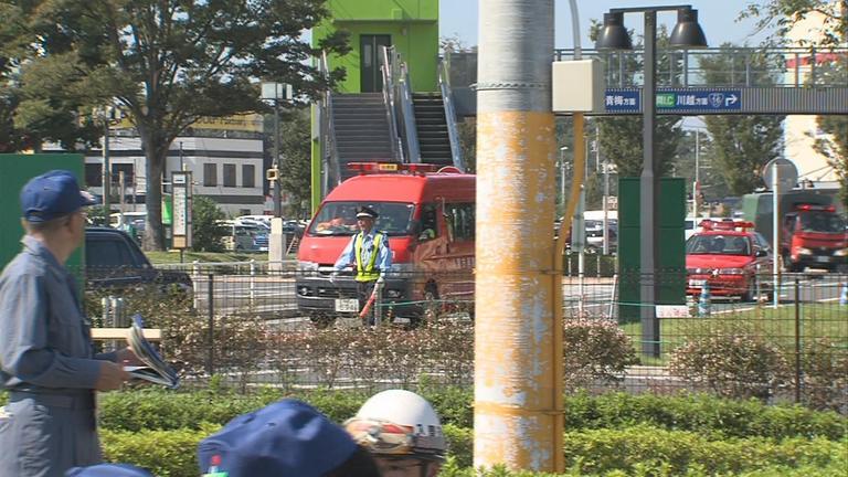 今回の訓練はアウトレットパーク内サウスプラザで化学剤が