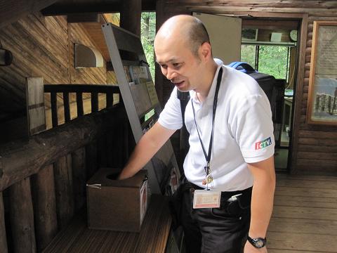 入口にあった「何が入っているかな?」の箱におそるおそる手を入れる課長。私は小心者なのでできませんでした・・・。