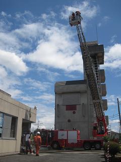 入間市内で一番高いはしご車、地上40mの高さまでいきます。