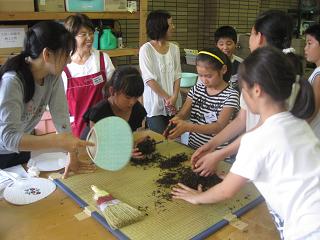 博物館の外でお茶摘みをした後、ホットプレートで熱して細かくして・・・を繰り返して緑茶。