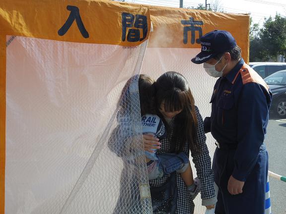 駐車場には入間市消防本部や消防団のみなさんによる起震車や煙体験がありました。
