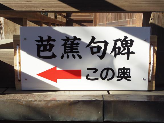 明治32年に建てられたものですが、今年1月その内容を紹介する看板と境内に「句碑はこちら」というお知らせが立てられました。 この看板のおかげで、私も句碑があったことに気が付いたのです。