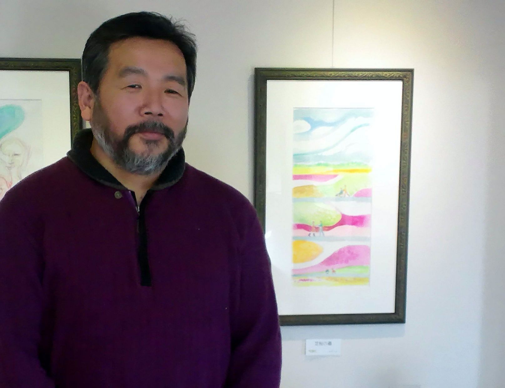 香本さんは北海道から沖縄まで様々な場所で個展を 開催している水彩画家で、 毎年1回茶房アトリエワタナベで開催しています。
