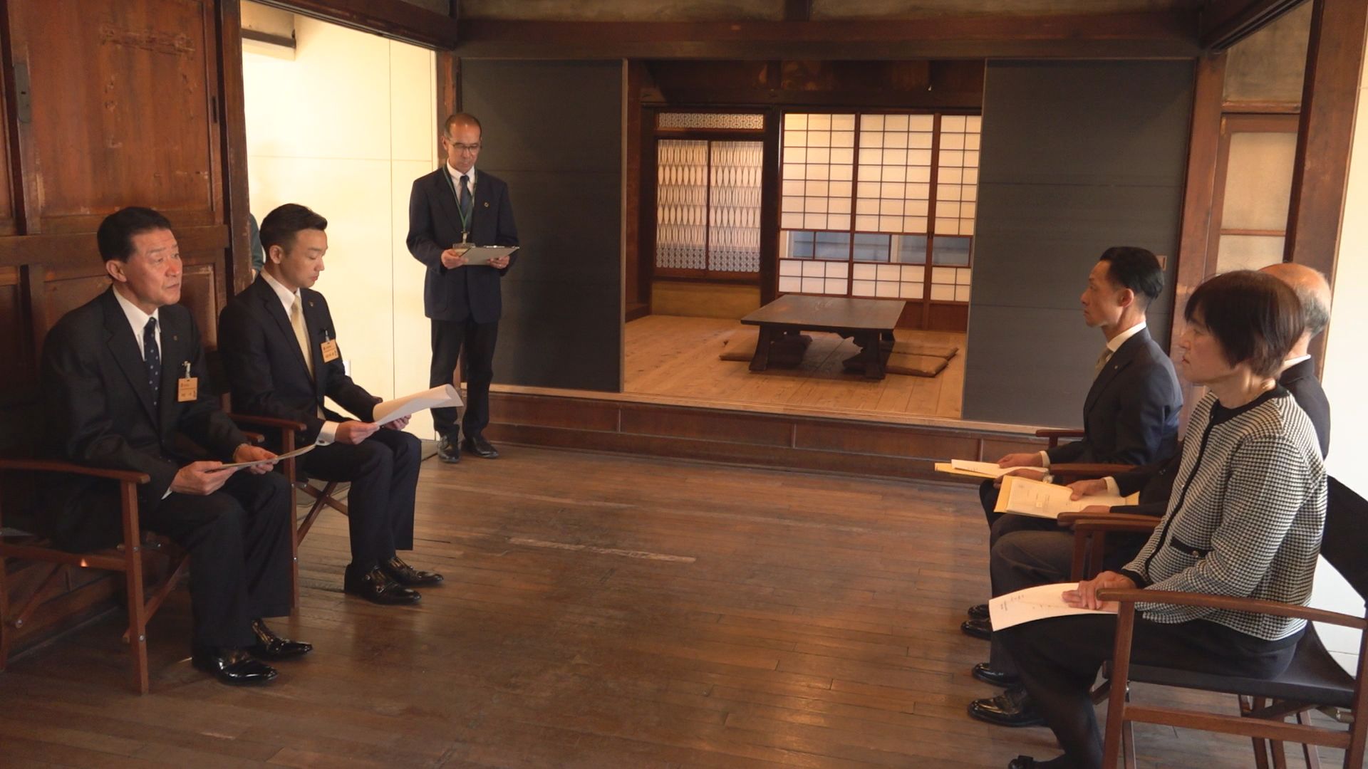 これを受けて、3月14日(土)に宮前町にある繁田醤油株式会社 西山荘STREET SPACE Aを会場に、国登録有形文化財登録証の伝達式が行われました。