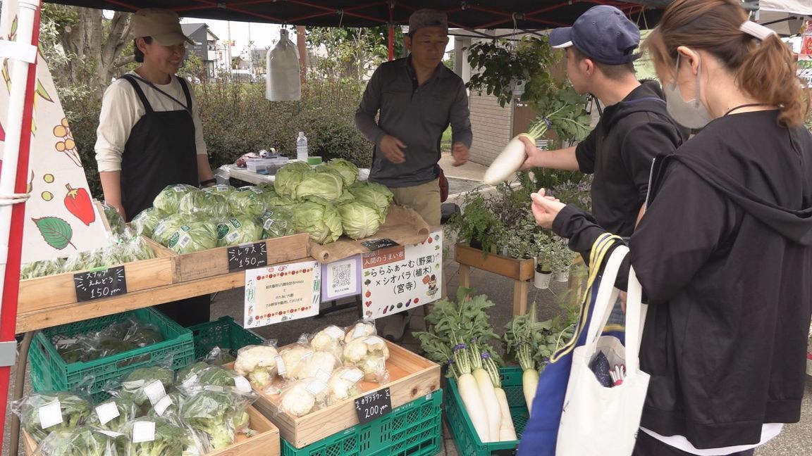 今回は12の生産者が集まり、新鮮な野菜や卵、いちごなどが出店されていました。