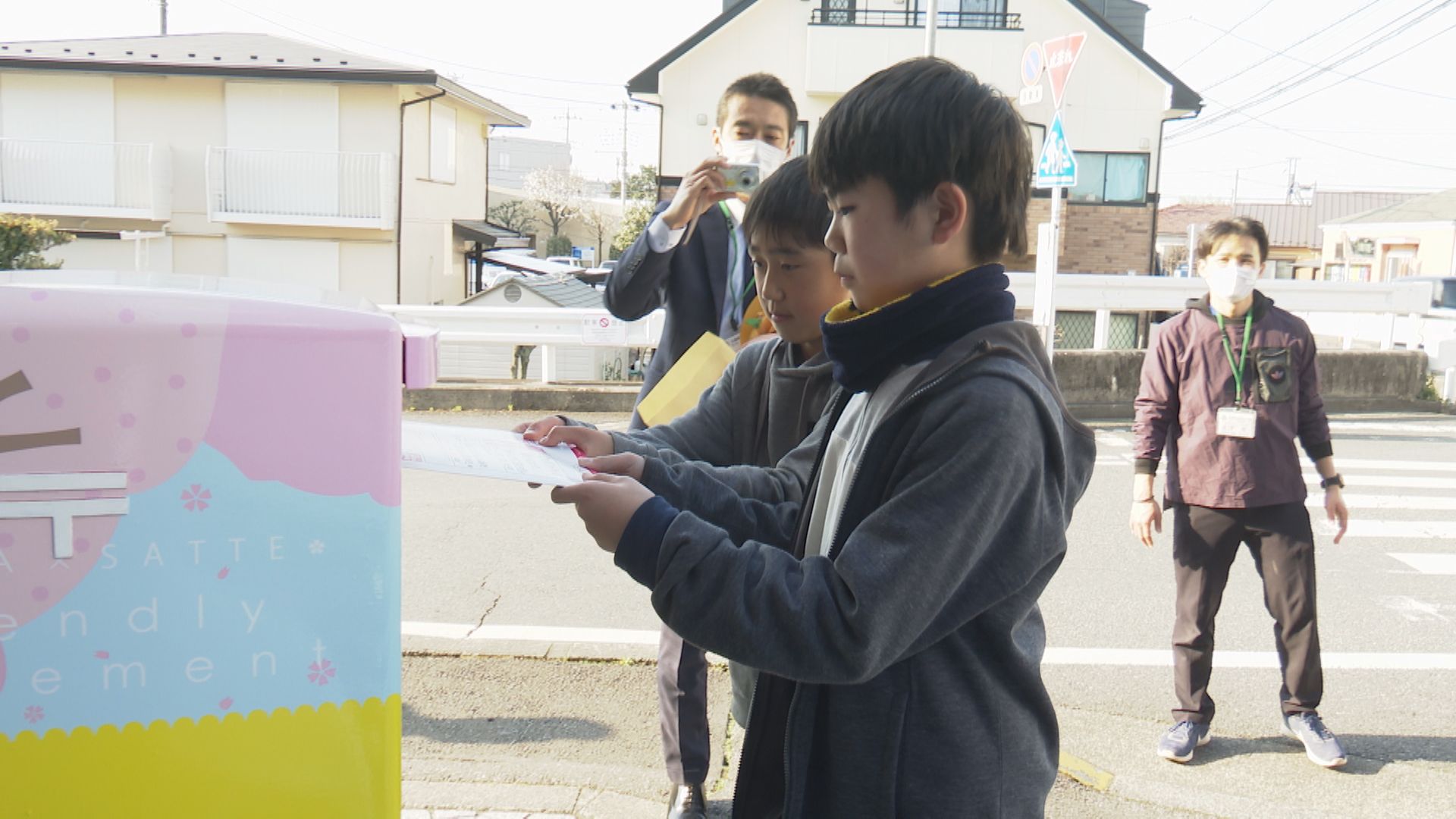 「ありがとうという気持ち」や「入間市の良さを知ってほしい」という思いを手紙を込めたという児童のみんな。