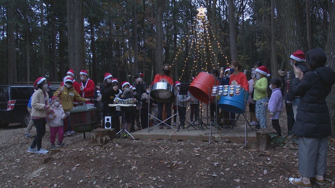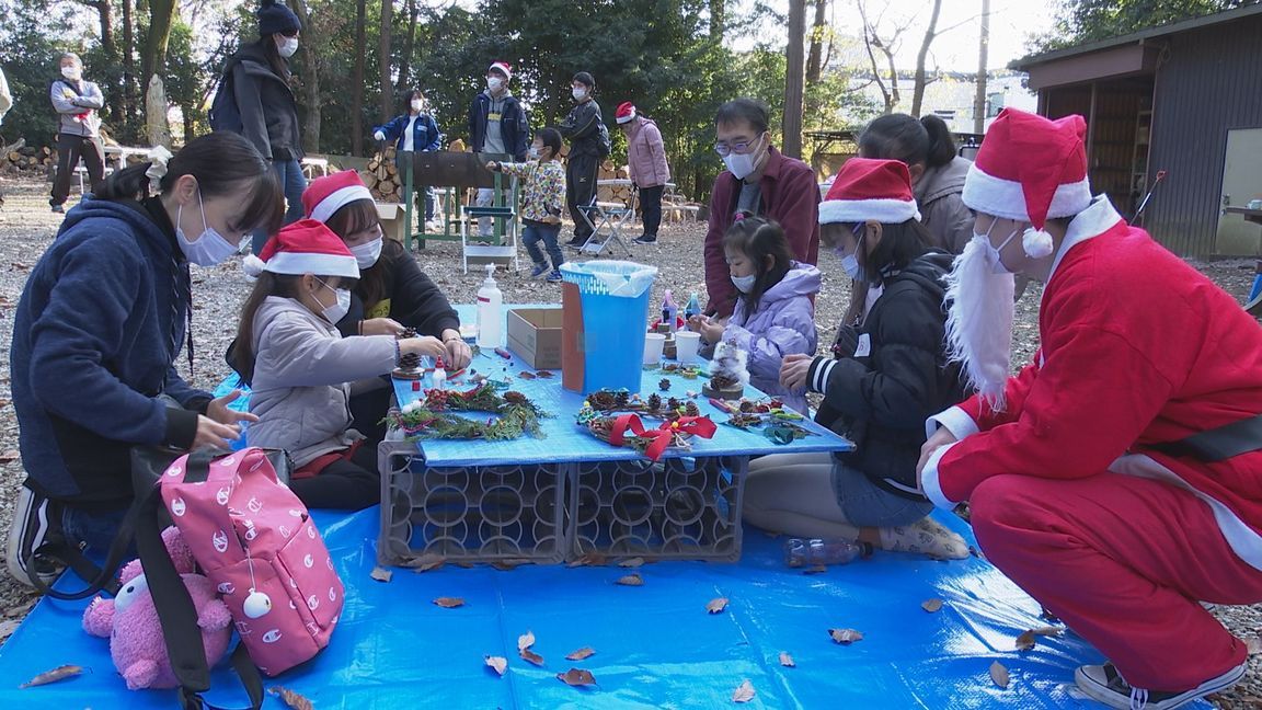 青少年活動センターの森が広がるキャンプ場には、20人以上の子どもたちと青少年相談さんが扮するサンタクロースがやって来ました。
