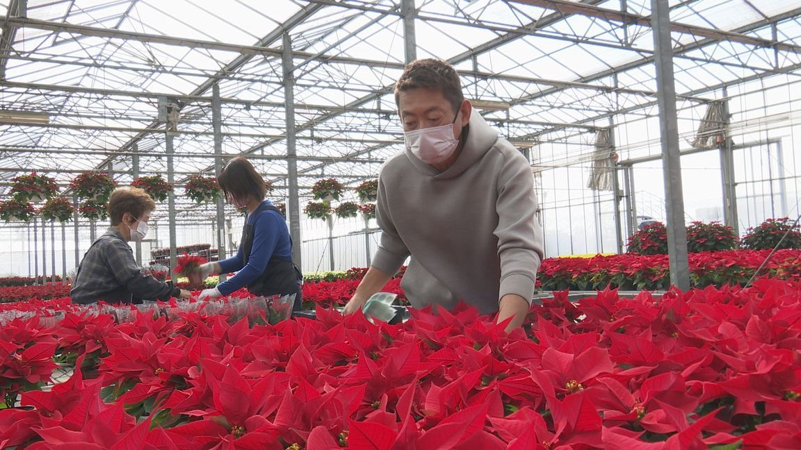 市内で唯一ポインセチアを生産している篠園芸さん。