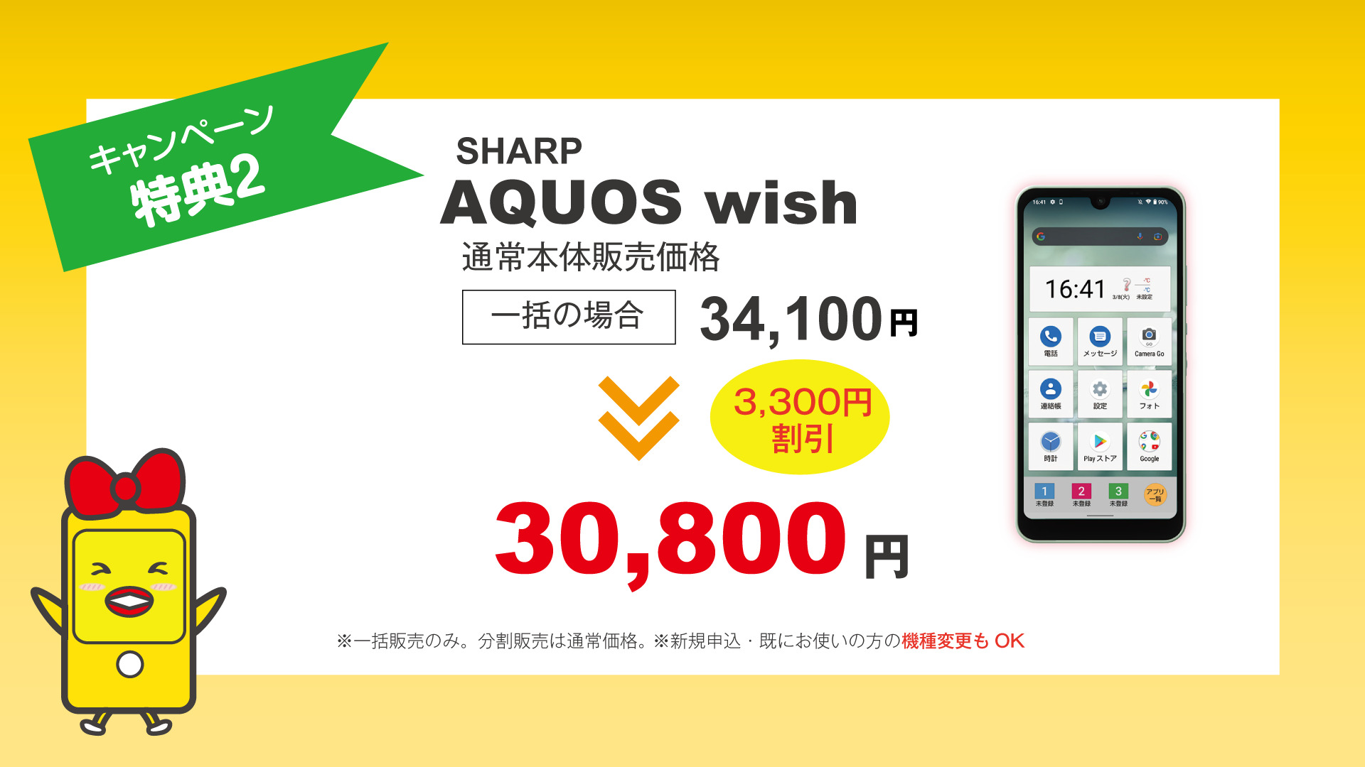 AQUOSwishも一括ご購入の場合、33000円引きの30800円に!