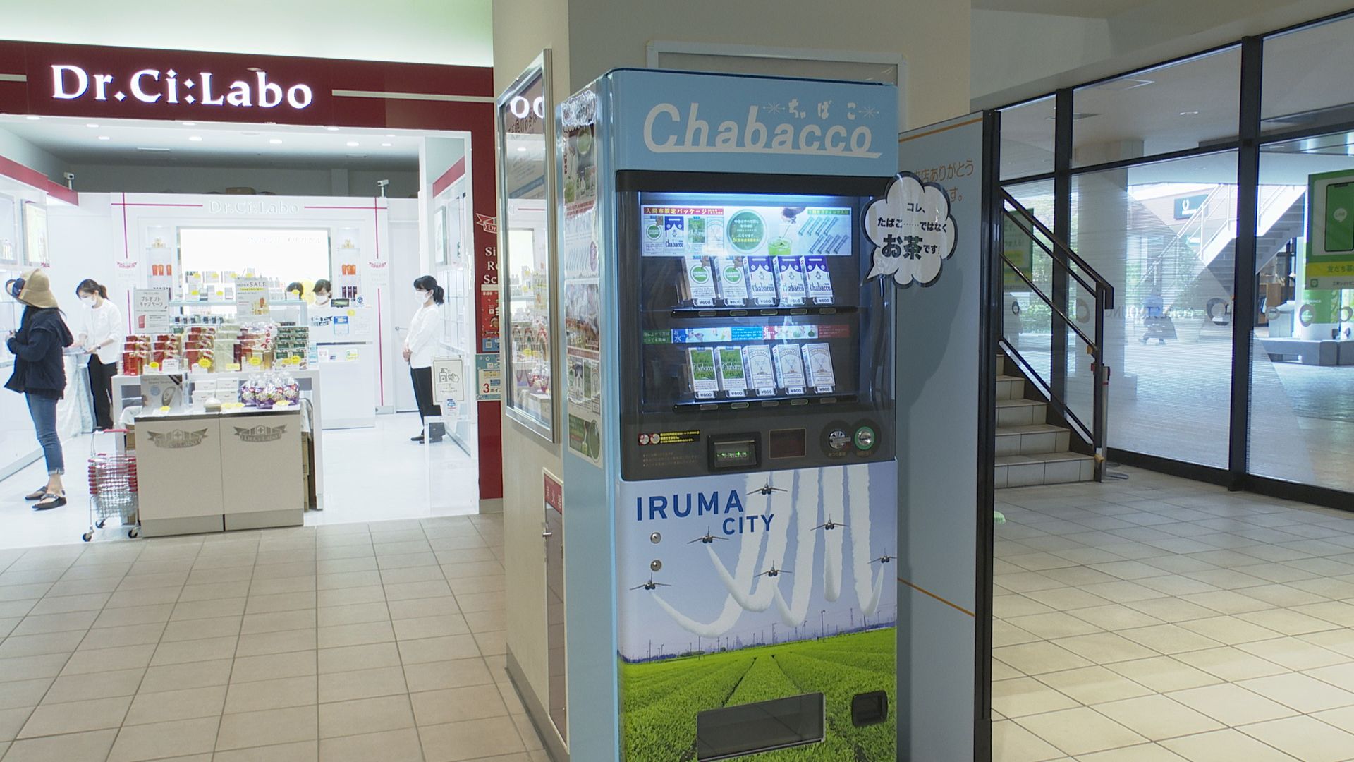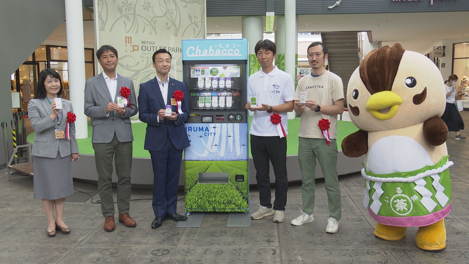 今日はちゃばこの自販機が置かれる三井アウトレットパーク入間でお披露目セレモニーが行われました。