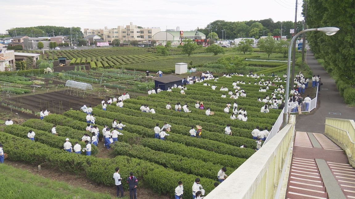 およそ1600平米ある2つの茶園では生徒たちが畝ごとに分かれて、新芽を摘んでいきました。