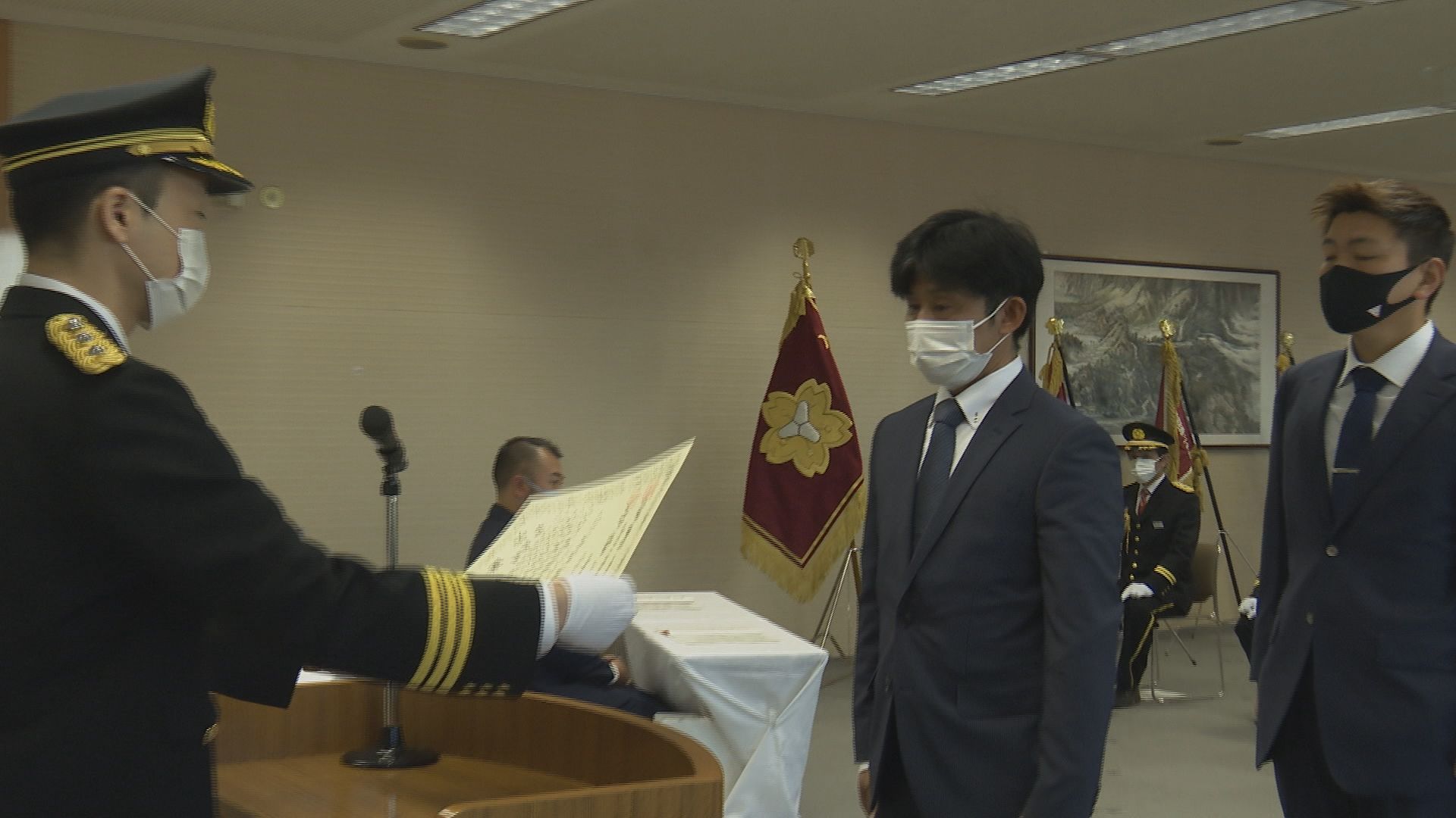 市民へのPRの場ではありませんが、今年1月9日に規模を縮小し、市役所会議室で入間市消防団表彰伝達式と防災講話が行われました。