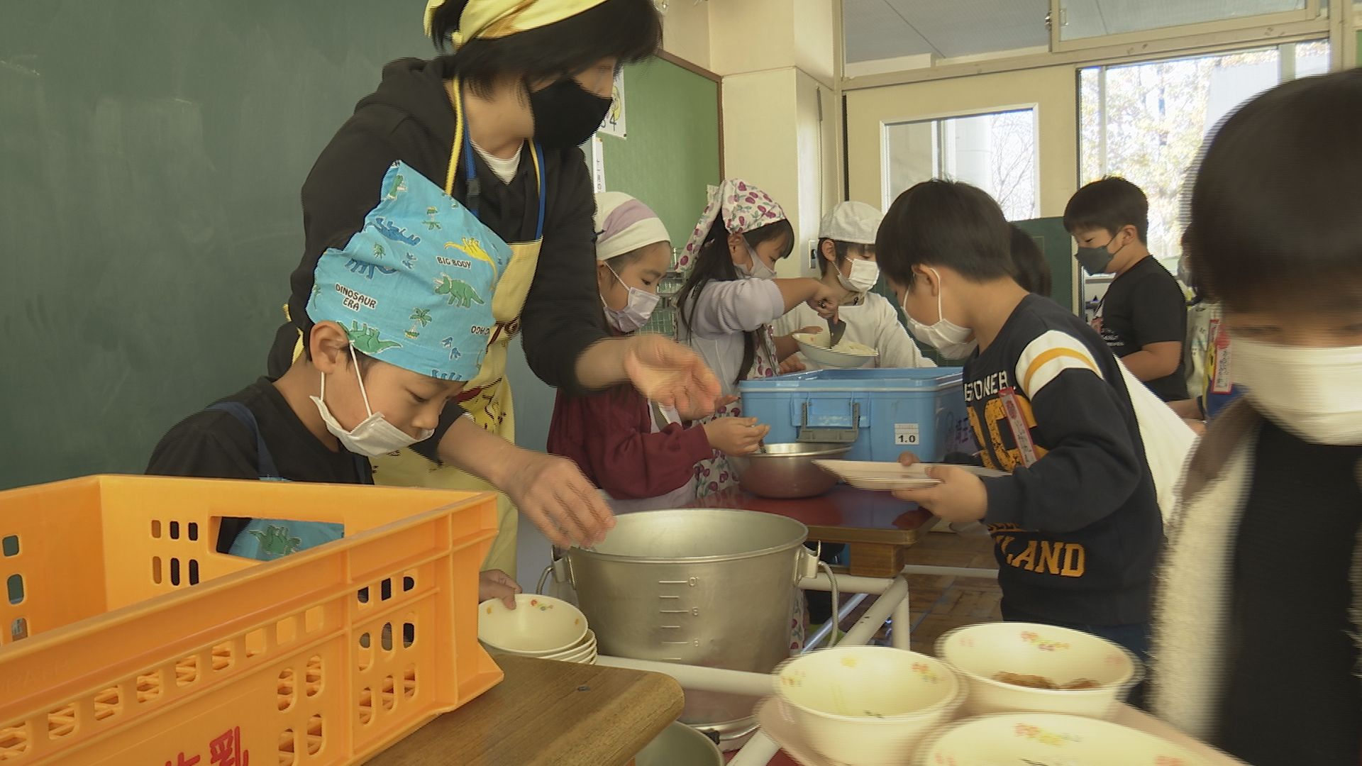 今日は新久小学校1年1組の給食の撮影に伺いました。
