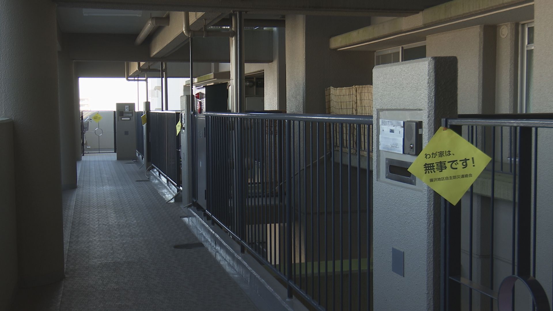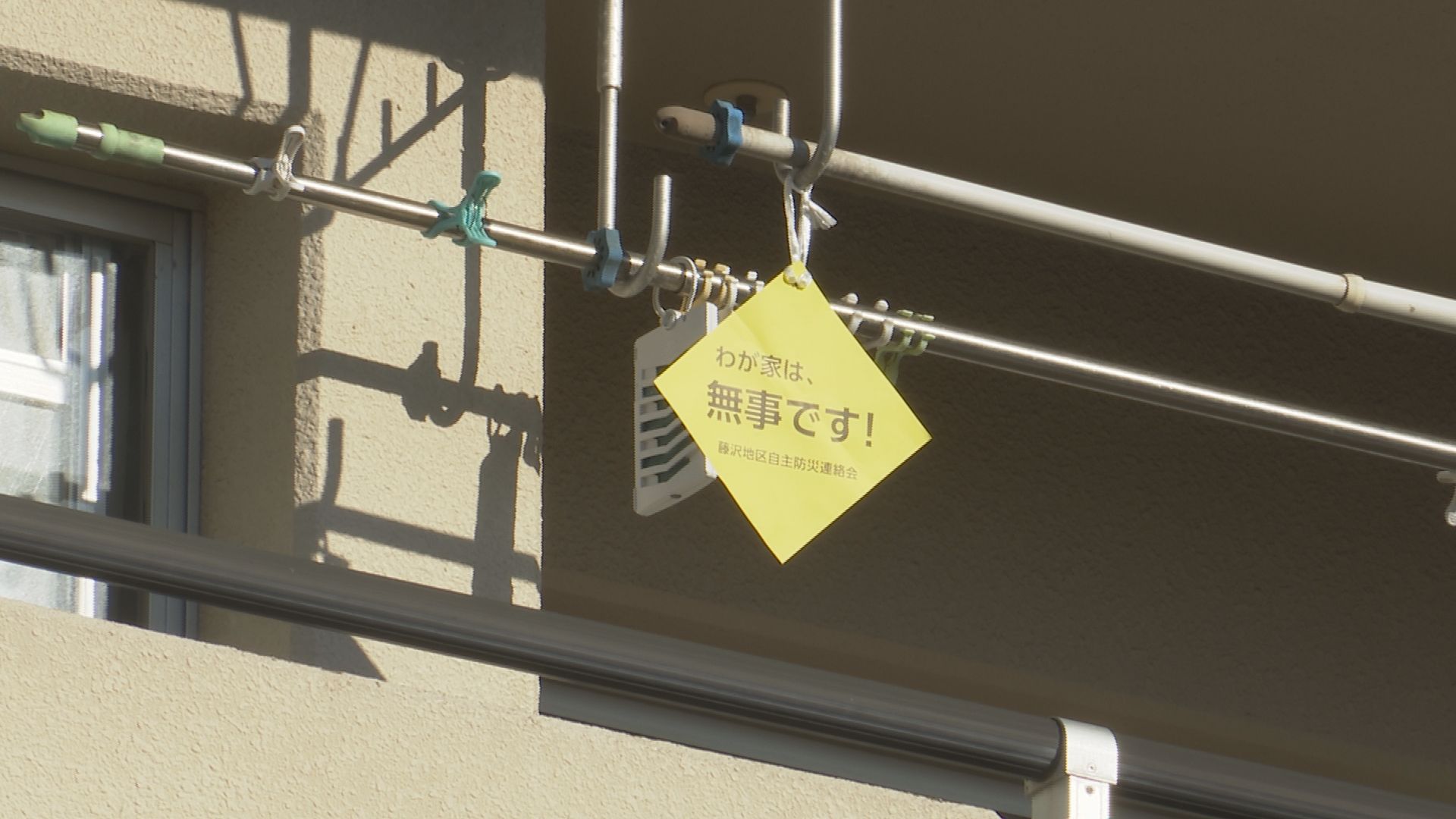 これは地震による住宅被害を想定し、各家庭が「無事です」と書かれた黄色いプレートを掲示することで安全を知らせます。