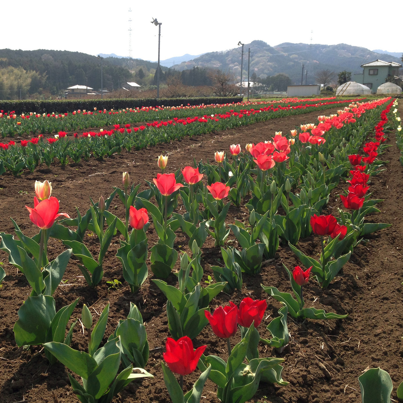 秋になるとコスモスでいっぱいになるこの場所は番組でも毎年紹介させていただいているのですが、そのコスモス街道に今年の春はチューリップがたくさん咲いています。