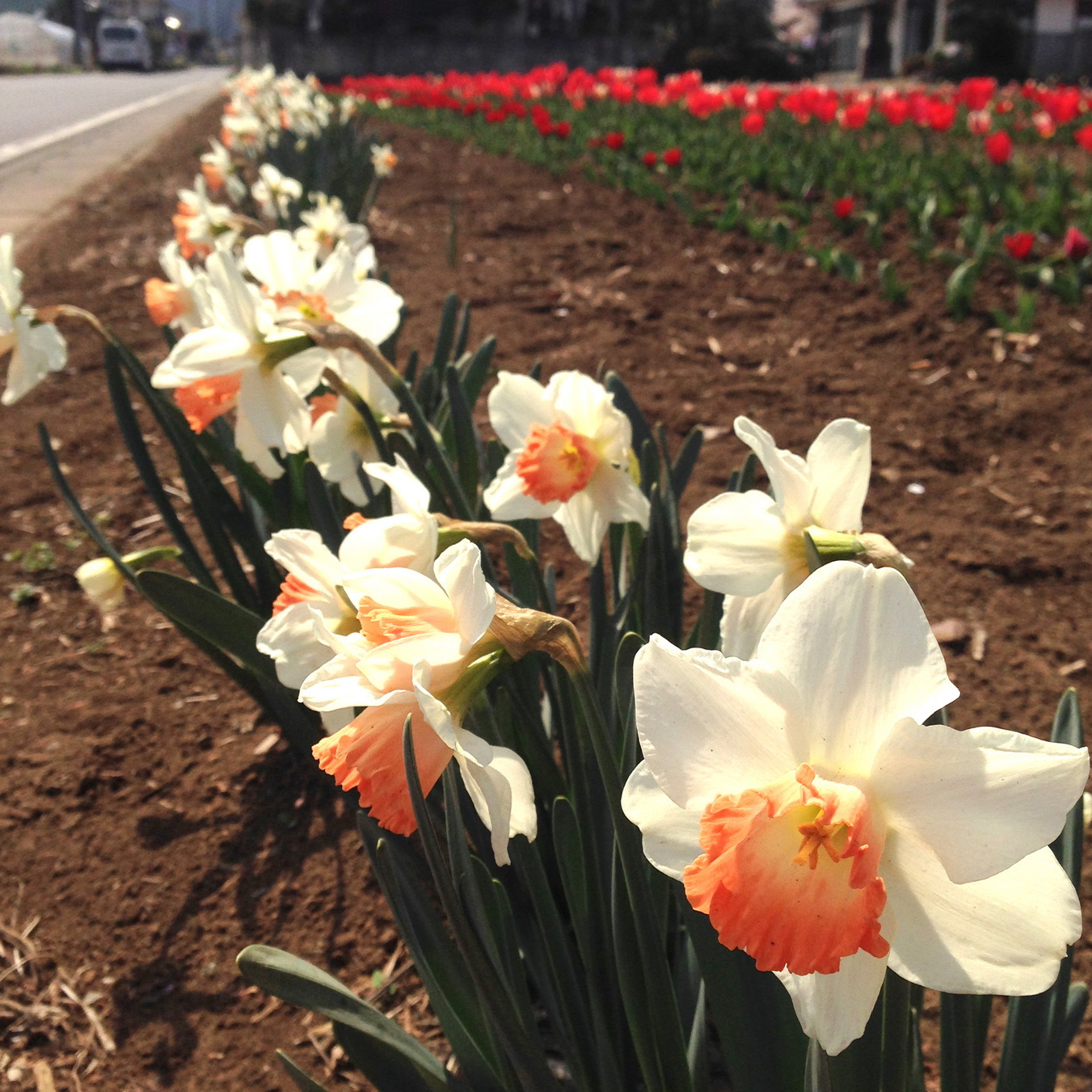 道沿いに咲いたスイセンの花も色合いがとってもきれいです!