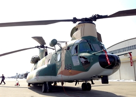 基地内を案内していただいたあと、なんと輸送用ヘリコプター、CH47の中に入らせていただきました!