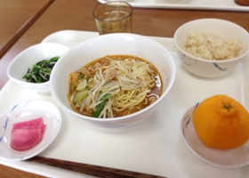 隊員食堂でお昼を食べ(隊員の方と同じ量なのでみなさんおなかいっぱいです!)
