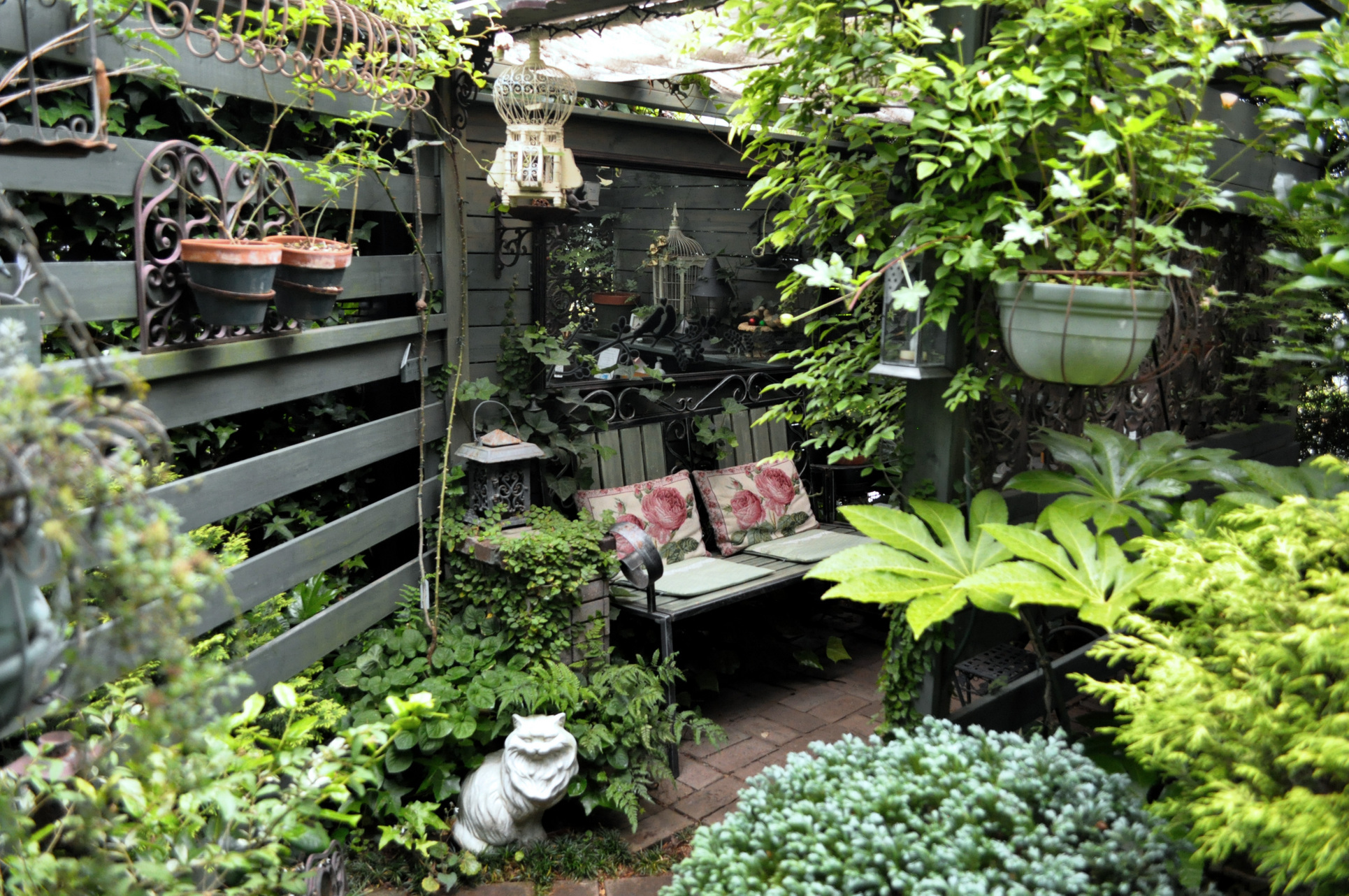 お庭にはネコちゃんにちなんだ名前のついたスペースがあり、椅子に座って休憩することもできます。