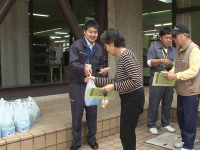 9時になると井上町長からの挨拶があったあと、苗の配布が行われました。