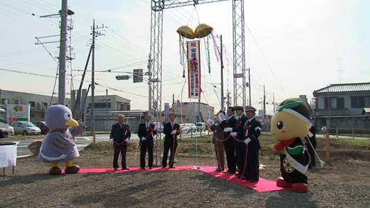 式典にはもろ丸くんとコバトンもかけつけ久寿玉割りなどが行われました