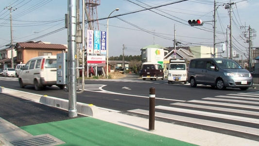 そんな川角農協前交差点に、この度の工事で鶴ヶ島方面に右折する右折帯ができました!