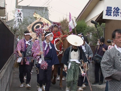 また、春の流鏑馬では乗り子の頭上に「オカイドリ」という女性の着物を竹にかぶせたものが随行します