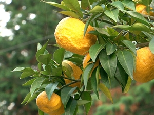 滝ノ入のゆずの散歩道に行ってきたのですが、ゆずの実がたくさん生っていました!
